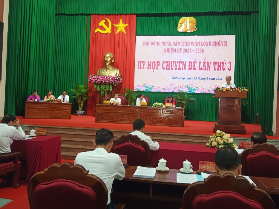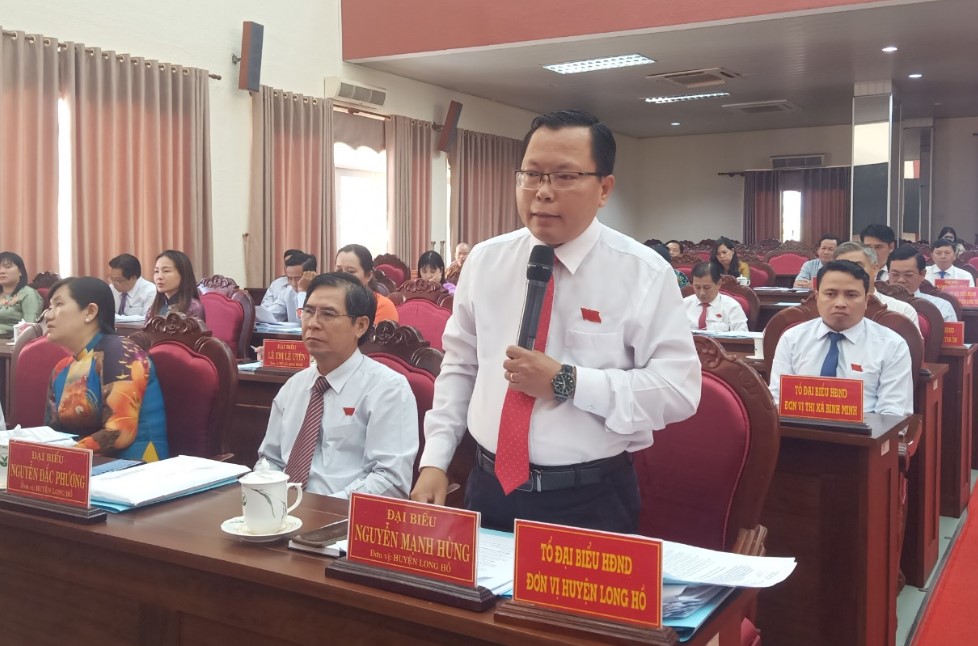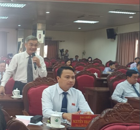 Phát biểu gợi ý thảo luận, Chủ tọa Bùi Văn Nghiêm đề nghị các vị đại biểu HĐND tỉnh tập trung cho ý kiến về: "(1) Cơ sở pháp lý ban hành các Nghị quyết về đầu tư công, về đất đai, nhân sự và phân bổ biên chế. Nhất là Nghị quyết về đầu tư công, việc điều chỉnh như dự thảo Nghị quyết có phù hợp chưa. (2) Về công trình giáo dục: hiện tại đang mang tên nhân vật Liệt sỹ, do đó hướng tới cần tính thật kỹ, tránh để dư luận không tốt trong xã hội (đặt tên xong rồi lại đổi tên). (3) Về việc thu hồi chuyển mục đích sử dụng đất lúa để thực hiện công trình, dự án. Thời gian qua, nhiều nơi thực hiện còn chưa chặt chẽ, đảm bảo theo quy hoạch, chưa đúng, đầy đủ các quy trình, do đó cần lưu ý thực hiện đảm bảo từng khâu, nhất là quan tâm đến công tác tái định cư, đảm bảo sinh hoạt đời sống người dân. Trong đó lưu ý 02 dự án chợ Tân An Luông và khu đô thị mới Phong Thới. (4) Về 15 biên chế của Văn phòng Thị xã Bình Minh: Theo tổng biên chế chung giai đoạn 2022-2026 thì có 15 biên chế này, nhưng năm 2022 và năm 2023 thì chưa được cơ quan cấp trên giao. Do vậy, nếu HĐND tỉnh không quyết định thì sẽ không có cơ sở để trả lương cho 15 biên chế này trong năm 2023, tuy nhiên, thực chất là 15 biên chế này vẫn đang hoạt động. Vấn đề này, xin ý kiến đại biểu HĐND tỉnh quyết định tạm giao Văn phòng HĐND và UBND Thị xã Bình Minh hoạt động.