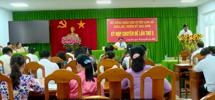 Đại biểu HĐND huyện thảo luận và biểu quyết thống nhất thông qua Nghị quyết về việc thành lập, tổ chức lại các cơ quan chuyên môn thuộc Ủy ban nhân dân huyện Long Hồ. Sau khi sắp xếp, UBND huyện Long Hồ có 09 Phòng chuyên môn trực thuộc gồm: Văn phòng HĐND và UBND; Phòng Nội vụ; Phòng Tài chính - Kế hoạch; Phòng Tư pháp; Phòng Văn hóa, Khoa học và Thông tin; Phòng Kinh tế, Hạ tầng và Đô thị; Phòng Giáo dục và Đào tạo; Phòng Nông nghiệp và Môi trường và Thanh tra huyện.