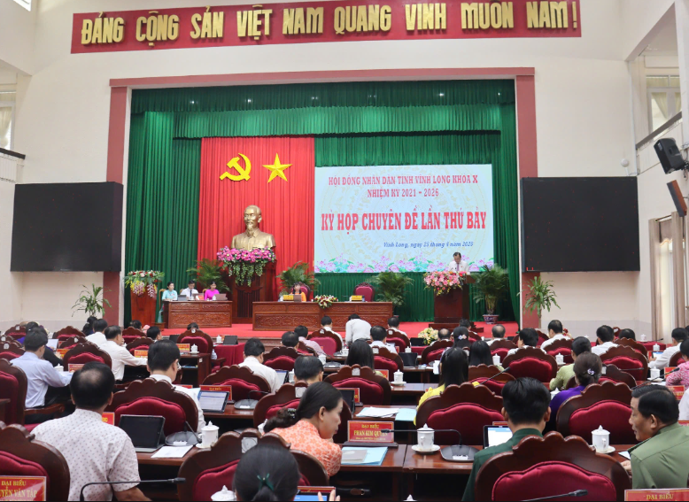Phát biểu khai mạc kỳ họp, Ủy viên Ban Thường vụ Tỉnh ủy, Phó Chủ tịch Thường trực HĐND tỉnh - Chủ tọa kỳ họp Nguyễn Minh Dũng nhấn mạnh: “Kỳ họp chuyên đề lần thứ Bảy có ý nghĩa đặc biệt quan trọng, là kỳ họp mang bước ngoặt lịch sử, tỉnh Vĩnh Long cùng với các tỉnh, thành phố trong cả nước đang gấp rút, quyết liệt cụ thể hóa, triển khai, tổ chức, thực hiện chủ trương của Trung ương, Bộ Chính trị, Ban Bí thư Trung ương Đảng về cuộc cách mạng sắp xếp đơn vị hành chính cấp tỉnh, cấp xã, tiến tới tổ chức chính quyền địa phương 2 cấp, nhằm tiếp tục đổi mới, sắp xếp tổ chức bộ máy của hệ thống chính trị tinh gọn, gần dân, sát dân, hoạt động hiệu năng, hiệu lực, hiệu quả. Đây là vấn đề đang nhận được sự đồng tình, ủng hộ rất cao của cán bộ, đảng viên và Nhân dân cả nước”.