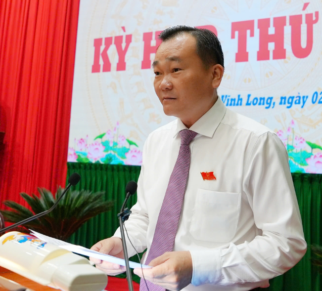 Phát biểu khai mạc, Chủ tọa kỳ họp - Phó Bí thư Tỉnh ủy, Chủ tịch HĐND tỉnh Nguyễn Minh Dũng cho biết: "Trong không khí phấn khởi cùng với cả nước, sáng ngày 30/6 vừa qua tỉnh Bến Tre, Trà Vinh và Vĩnh Long đã tổ chức thành công buổi Lễ công bố các Nghị quyết, Quyết định của Trung ương và 03 tỉnh về sắp xếp đơn vị hành chính, thành lập các cơ quan, tổ chức trong hệ thống chính trị, kết thúc hoạt động cấp huyện và thực hiện bộ máy chính quyền địa phương 02 cấp tỉnh và xã từ 01/7. Kết quả trên khẳng định rằng chấp hành chủ trương của Đảng và Nhà nước thời gian qua, Đảng bộ, chính quyền, quân và dân 03 tỉnh Bến Tre, Trà Vinh, Vĩnh Long đã có nhiều nỗ lực, khắc phục khó khăn, đoàn kết, thống nhất cao trong phối hợp xây dựng các đề án, kế hoạch, chuẩn bị các điều kiện, các mặt công tác vượt tiến độ, yêu cầu đề ra và bắt đầu cho cuộc cách mạng mang tính lịch sử, sắp xếp đơn vị hành chính, kết thúc hoạt động cấp huyện, thực hiện bộ máy chính quyền địa phương 02 cấp từ 01/7. Trong sự đồng thuận, tin tưởng rất cao của Nhân dân và cộng đồng doanh nghiệp, là tiền đề rất quan trọng để hôm nay các vị đại biểu HĐND của 03 tỉnh Bến Tre, Trà Vinh, Vĩnh Long chúng ta được hội tụ về đây trong mái nhà chung, nơi tràn đầy niềm tin, hy vọng một HĐND tỉnh đông về số lượng, đa dạng về cơ cấu, thành phần với truyền thống và bề dày kinh nghiệm hoạt động phong phú, đa dạng sẽ góp phần đổi mới, nâng cao chất lượng, hiệu lực, hiệu quả hoạt động của HĐND tỉnh Vĩnh Long trong thời gian tới". Phó Bí thư Tỉnh ủy, Chủ tịch HĐND tỉnh Nguyễn Minh Dũng khẳng định.