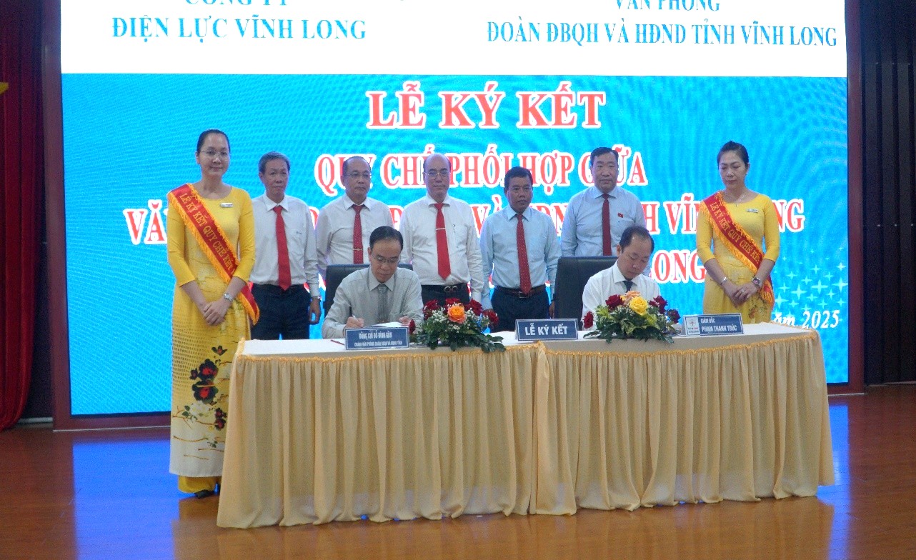 Thay mặt lãnh đạo 02 đơn vị, ông Phạm Thanh Trúc, Giám đốc Công ty Điện lực Vĩnh Long đã tiếp thu các ý kiến của đại biểu tại Hội nghị, kịp thời điều chỉnh dự thảo và tiến hành ký kết Quy chế phối hợp trước sự chứng kiến của lãnh đạo Thường trực HĐND tỉnh, lãnh đạo Đoàn ĐBQH tỉnh và đại diện tập thể cán bộ, công chức, nhân viên của 02 đơn vị.